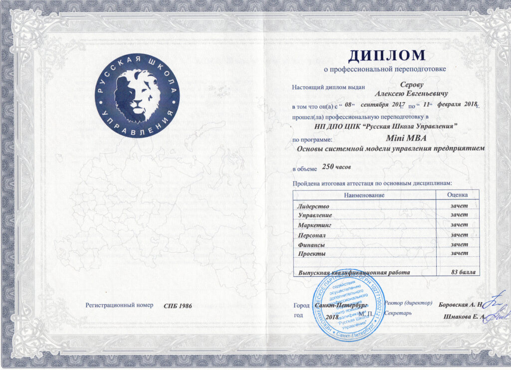 Mini MBA – комплексная подготовка современных руководителей. Это не сокращенный курс классического MBA, а принципиально новый образовательный продукт. За 6 месяцев я освоил концентрированную программу обучения и получил практические навыки для эффективного управления бизнесом и управления персоналом.