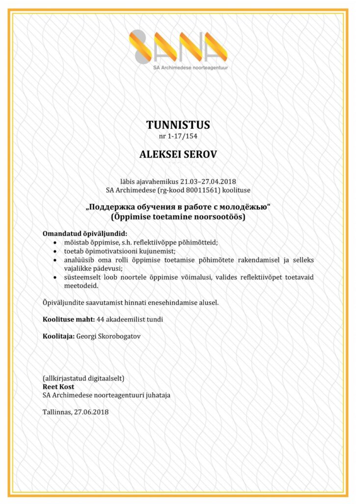 “Поддержка обучения в работе с молодёжью”  В центре внимания тренинга — тема планирования и проведения процесса обучения, которое происходит в сфере работы с молодёжью. Общая цель курса – создать условия, где молодёжный работник осознает свою роль как поддерживающего обучения, который в т.ч. умеет планировать процесс обучения, помогает молодым людям осознать, чему и как они учатся, способствуя также развитию навыка озвучивать и представлять результаты своего обучения. Преподаватель: Георгий Скоробогатов (преподаватель взрослых / андрагог)