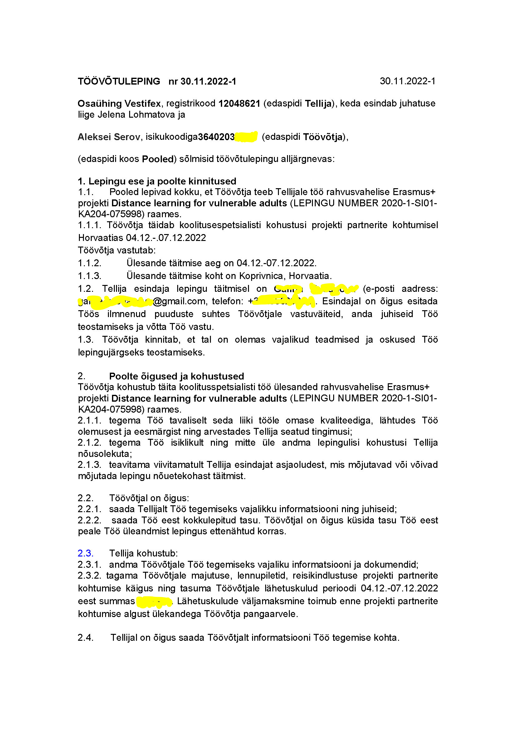 Mul oli hea meel vastu võtta kutse osaleda rahvusvahelises projektis Distance Learning for Vulnerable Adults. See kogemus oli mulle eriti väärtuslik, kuna töö rahvusvahelises keskkonnas andis mulle võimaluse näha erinevaid hariduslähenemisi, jagada parimaid praktikaid ja sügavamalt mõista probleeme, millega haavatavad rühmad erinevates riikides silmitsi seisavad.