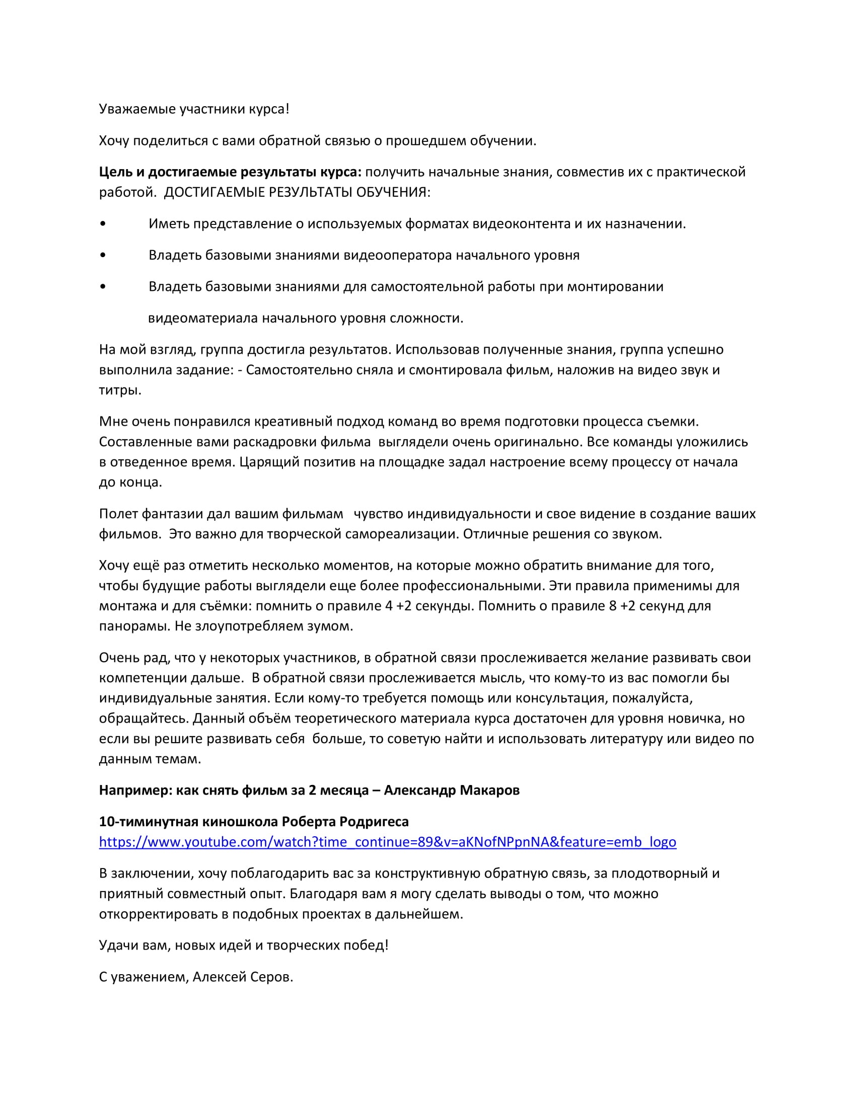 Rühmaga töö ajal pean alati tellijaga ühenduse tekkivate tööküsimuste arutamiseks. Pärast õppijate ankeetide ümbertöötamist analüüsin oma tegevust õppejõuna. Analüüsin ja hindan koolituseks püstitatud eesmärke ja saavutatud tulemusi. Pärast seda koostan oma tagasisidet tellija jaoks, milles jutustan saavutatud koolituse tulemustest, sõnastan positiivseid hetki ja raskusi. Kui ma kasutan tellija töökeskkonda, siis annan tagasiside õppekeskkonnast ka jagades oma muljeid tundmustest või märkustest. Kui minu arust ei vastanud midagi rühma komfordi kriteeriumidele ning seda olukorda saab muuta, teavitan sellest tellijale ja me arutame seda koos. Pean õigeks anda tagasisidet kolleegidele juhul, kui ma olen nende abi palunud. Näiteks, kui ma küsisin kolleegilt nõu, mis õppemeetodit on paremini rakendada, siis jagan temaga infot sellest, kas olid mul raskusi, mis mind aitas ja kuidas reageeris minu õpperühm. Minu jaoks on see enesearendamine ja minu kolleegi kogemuse täiendamine. Mitte osaledes otse õpetamisprotsessis kolleeg saab informatsiooni, mis võiks olla kasulik tema enesearendamiseks ja professionaalsete kogemuste kogumiseks. Juhul, kui keegi palus minult abi ja pärast seda ei andnud mulle tagasisidet, püüan ise helistada talle ja teada saada, kuivõrd informatsioon ja nõuanded minu poolt said kasulikeks. Veenan ka oma lähedasi kolleege seda põhimõtet järgima. Pärast õppekursuse lõpetamist saadan tagasiside ankeete kõigile koolituse osalejatele ja huvitatud isikutele. |
