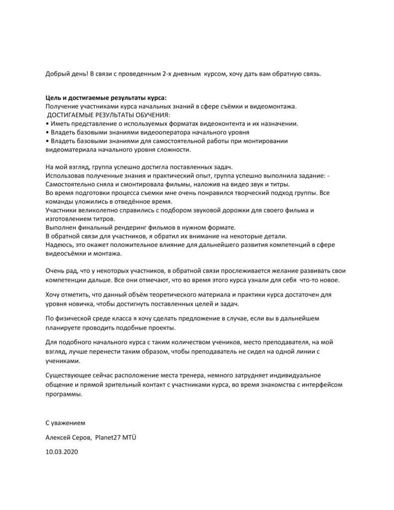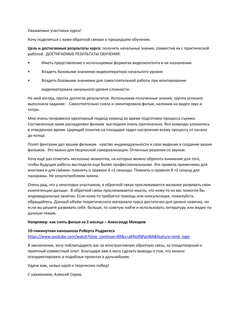 Обратная связь клиенту и ученикам после окончания курса